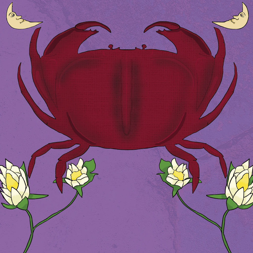 Solution: For this project, I was thinking about my zodiac sign; cancer. I included a crab and a moon, and then tied in a some flowers (cancers are a rose.)
